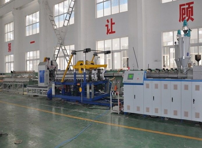 2. يتكون خط أنابيب PE هذا من شاحن المواد + الطارد اللولبي المفرد + قالب الأنبوب + خزان معايرة الفراغ + خزان التبريد بالرش × 2 مجموعات + ثلاث آلات سحب كاتربيلر + قاطع بدون غبار + مكدس.