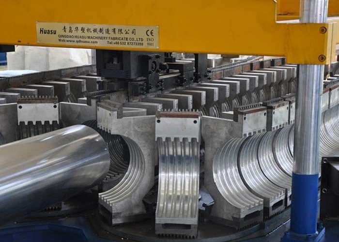 خط بثق الأنبوب المموج أحادي الجدار PE / PP / PVC مع آلة بثق لولبية مفردة أو مزدوجة